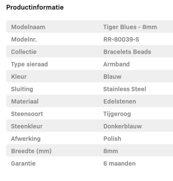 Rebel & Rose Tiger Blues 8 mm, RR-80039-S