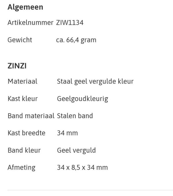 De JULIA watch is het nieuwste stijlvolle dameshorloge van Zinzi. wijzerplaat, met stijlvolle goudkleurige stalen band met chique clip-sluiting. Natuurlijk met de bekende Zinzi touch ontworpen: het extra dunne Japanse uurwerk en de ronde stalen goudkleurige kast (34mm) zorgen voor een fashionable look. Leuk detail: de seconde wijzer met een subtiel hartje. Ook 5atm waterbestendig (tegen regen en spatwater) en met sterk mineraal glas. Kwaliteit staat bij Zinzi voorop.