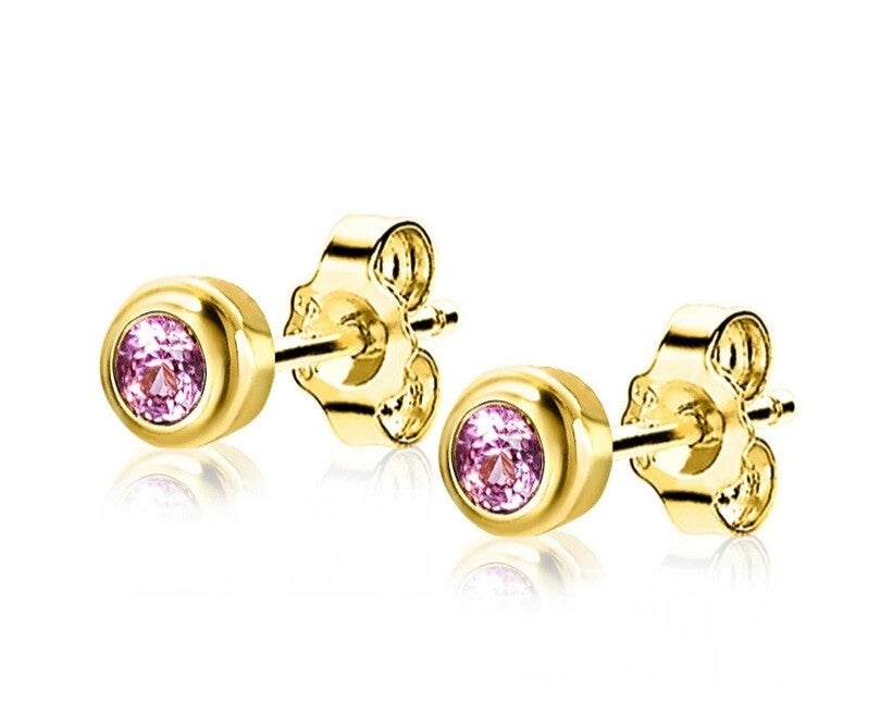 ZINZI zilveren oorknop geel verguld birthstone ZIO-Oktober