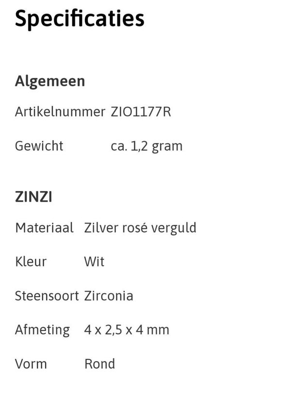 ZINZI zilveren oorknoppen in 14K rosegoud verguld met wit zirconia De oorsieraden zijn vervaardigd van eerste gehalte zilver (925) en extra 14K rosegoud