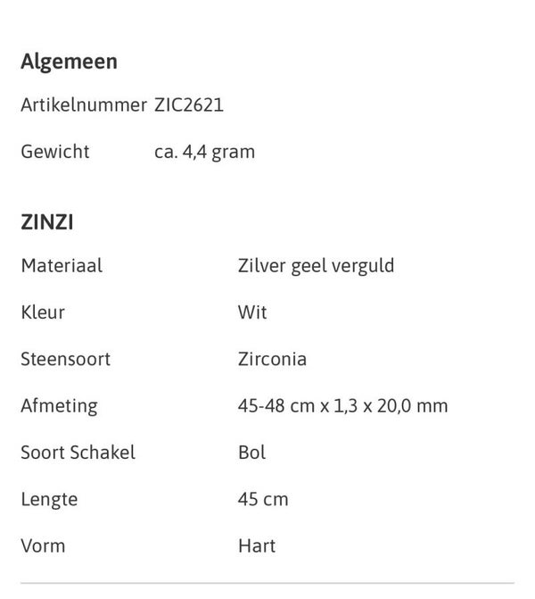 ZINZI zilveren collier geel verguld Hart Zic2621G