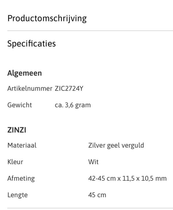 ZINZI zilveren trendy collier in geel verguld Met herkenbaar ZINZI hartje bij de sluiting. Vervaardigd van eerste gehalte zilver (925) en met een extra geelgoudkleurige laag.