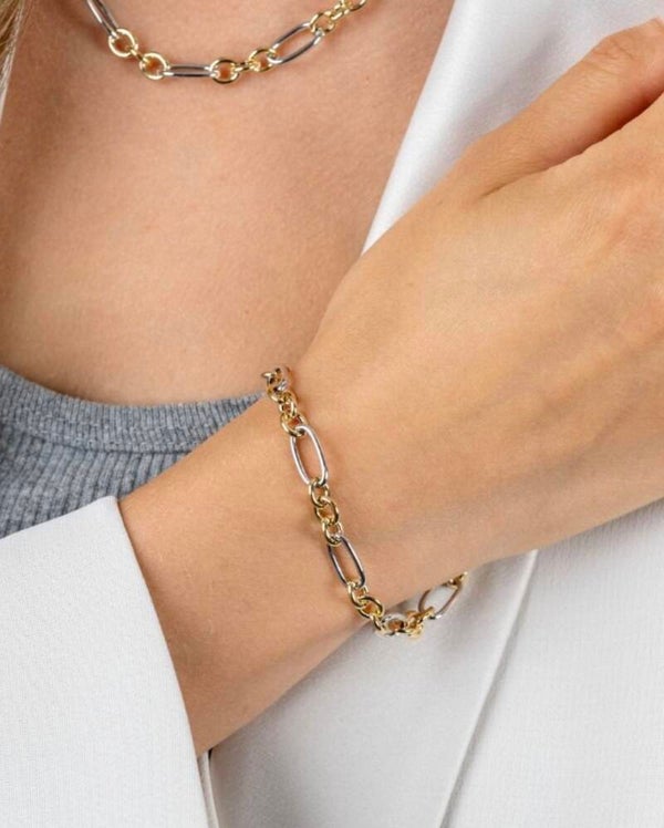 ZINZI zilveren armband bicolor in 14K geel verguld Bij sluiting herkenbaar ZINZI, door het zilveren Zinzi hartje. Vervaardigd van eerste gehalte zilver (925) en extra 14K geel verguld.