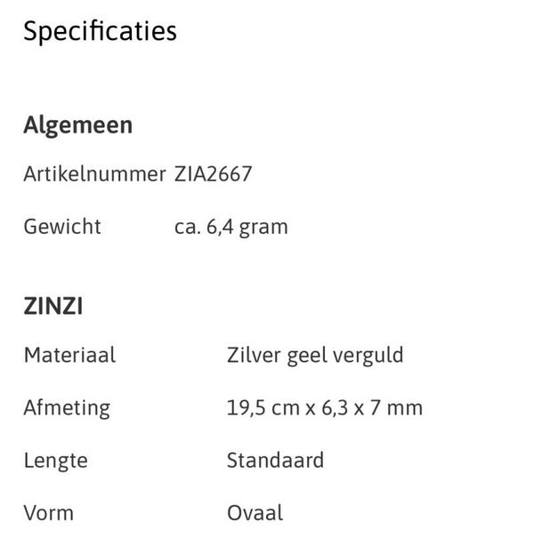 Zinzi zilveren armband Biocolor verguld Zia2667