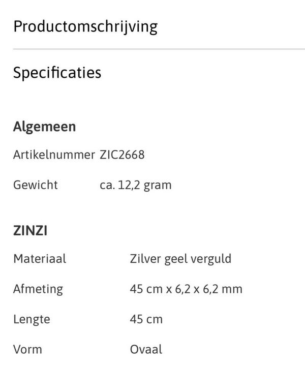 Zinzi zilveren Ketting paperclip Biocolor verguld Zic2668 45 cm
