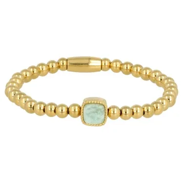 Ontdek de luxe van de elastische damesarmband van My Bendel. Deze gouden armband met Amazonite edelstenen bedel en stainless steel biedt een stijlvolle uitstraling.