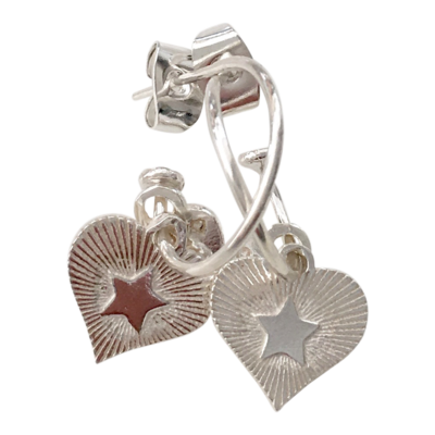 Echt 925 sterling zilveren creolen met bedel en het joy logo. Deze oorbellen zijn makkelijk te combineren met andere oorringen.