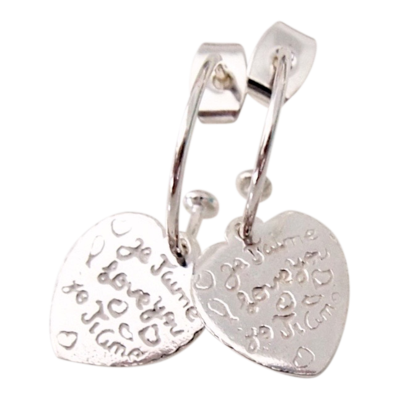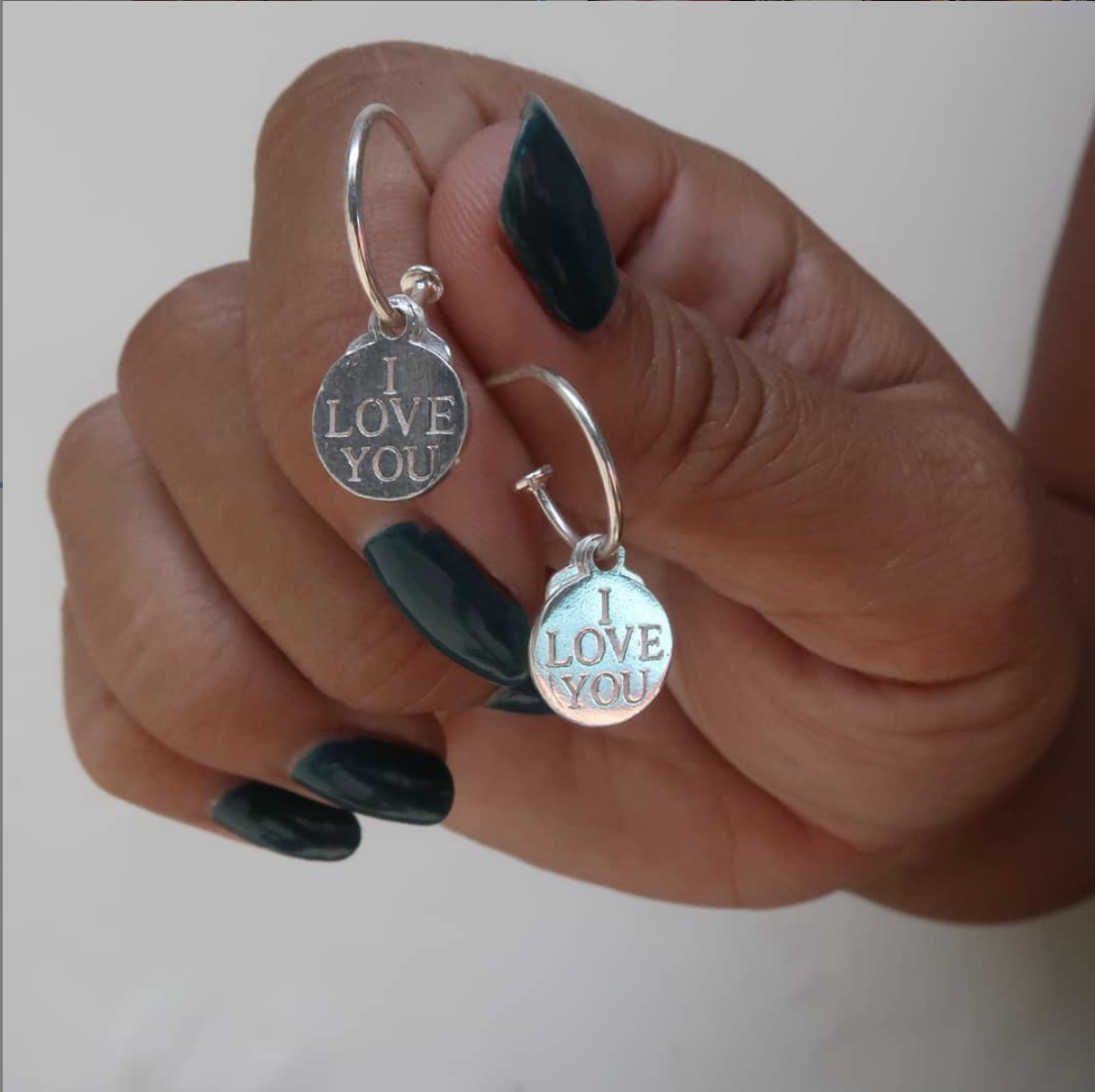 Echt 925 sterling zilveren creolen met bedel en het joy logo. Deze oorbellen zijn makkelijk te combineren met andere oorringen.