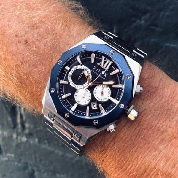 Horloge Wise Men Staal Zilver Blauw VNDX