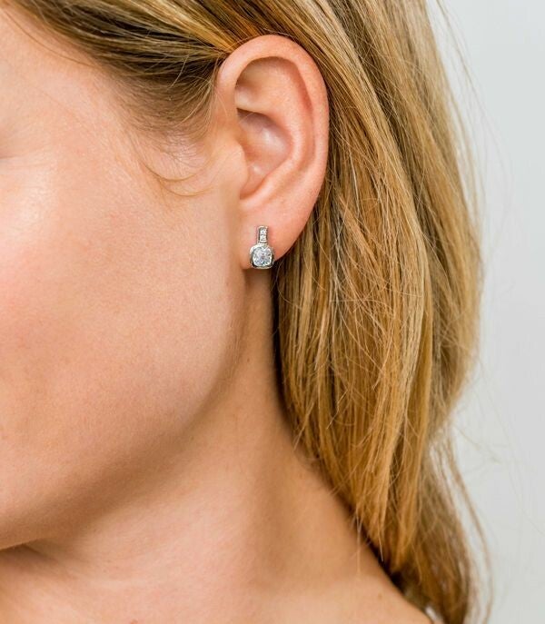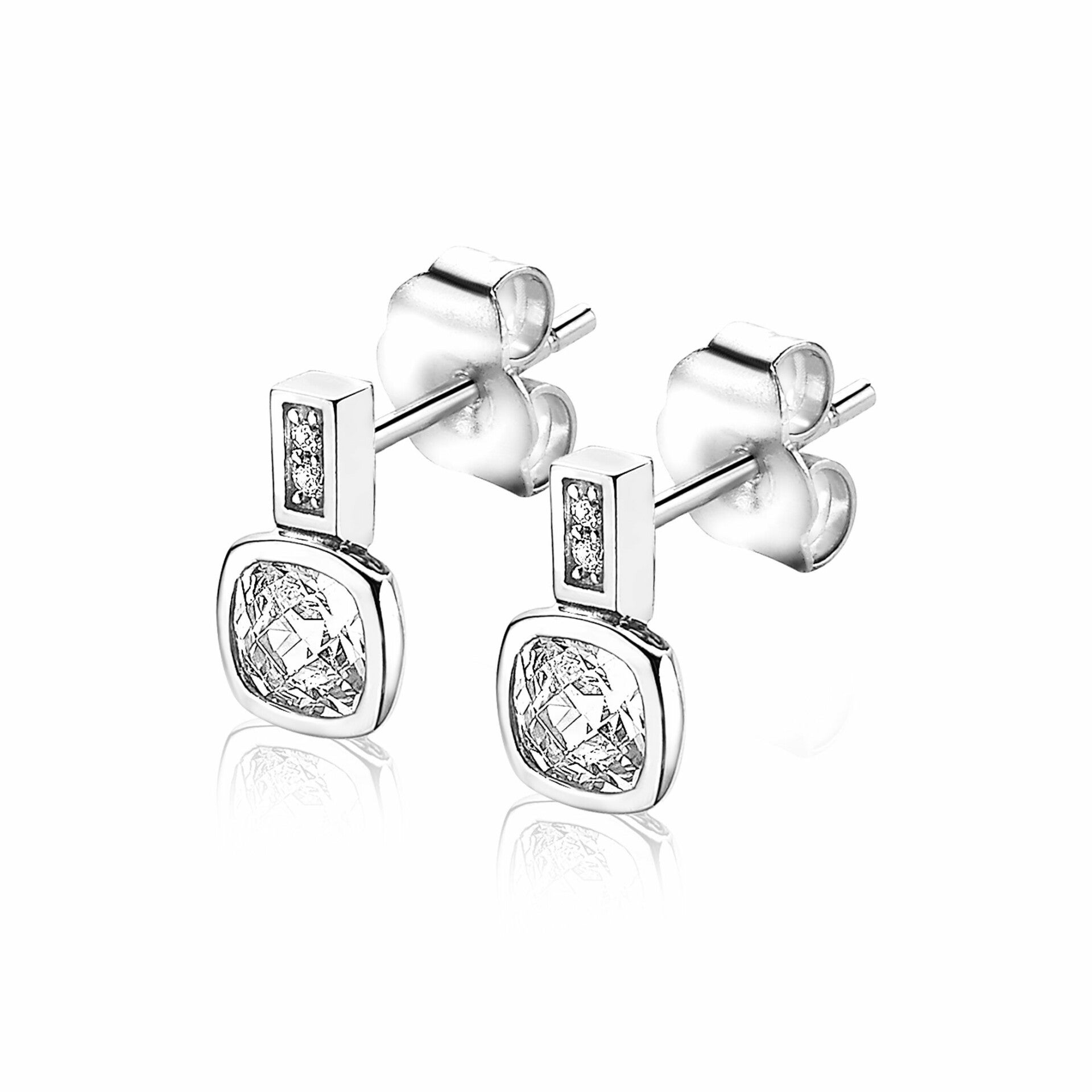 Zinzi zilveren oorknoppen vierkant wit ZIO1664