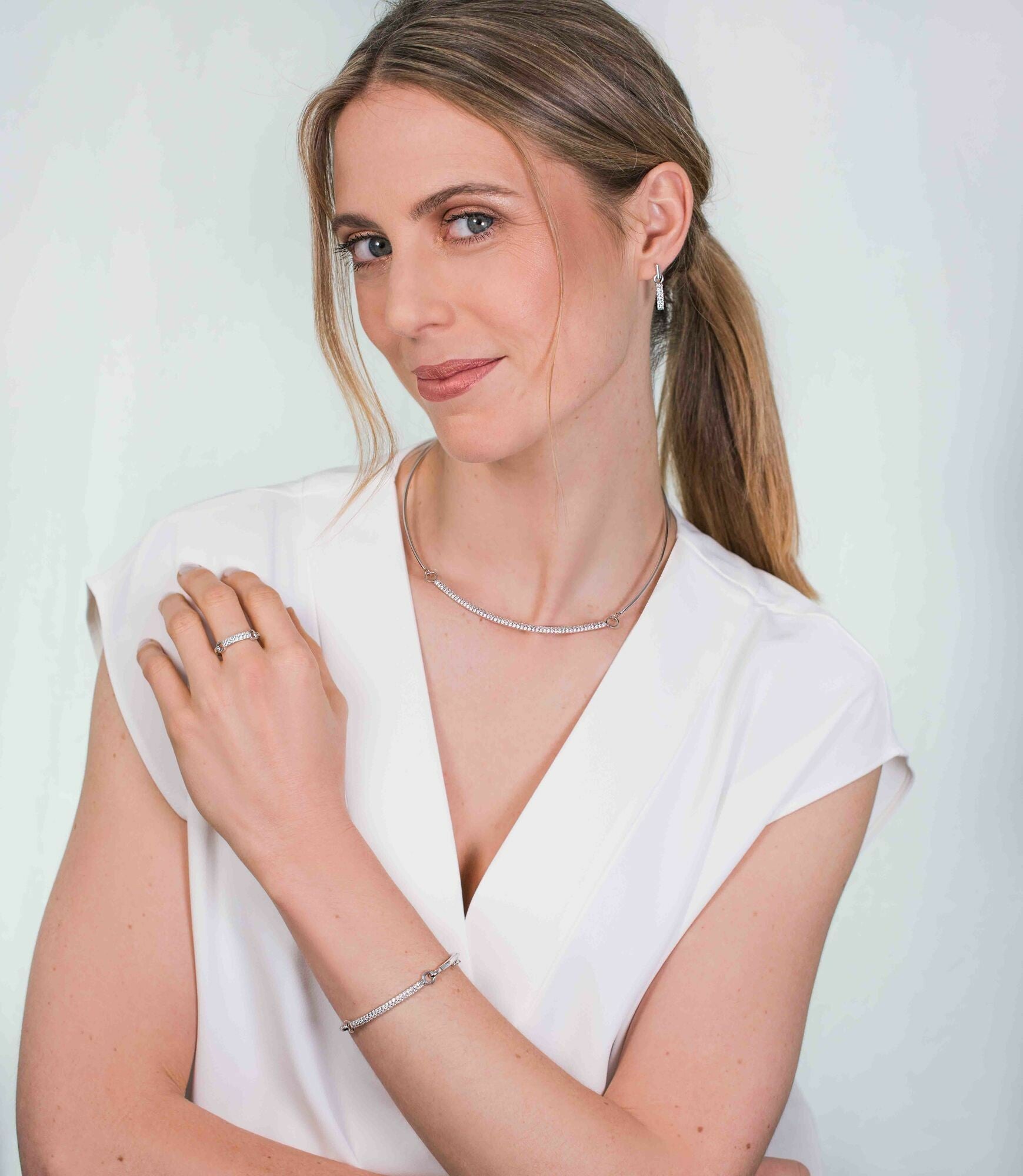 ZINZI zilveren spang collier van 3mm breed, waarbij het gedeelte dat op de hals valt schitterend is bezet met witte zirconia's. Voorzien van een fraaie sluiting en met herkenbaar Zinzi hartje. De ketting is in lengte te variëren van 42 tot 45 cm. Vervaardigd van eerste gehalte zilver (925) en voorzien van een extra rodiumlaag voor langdurige glans.