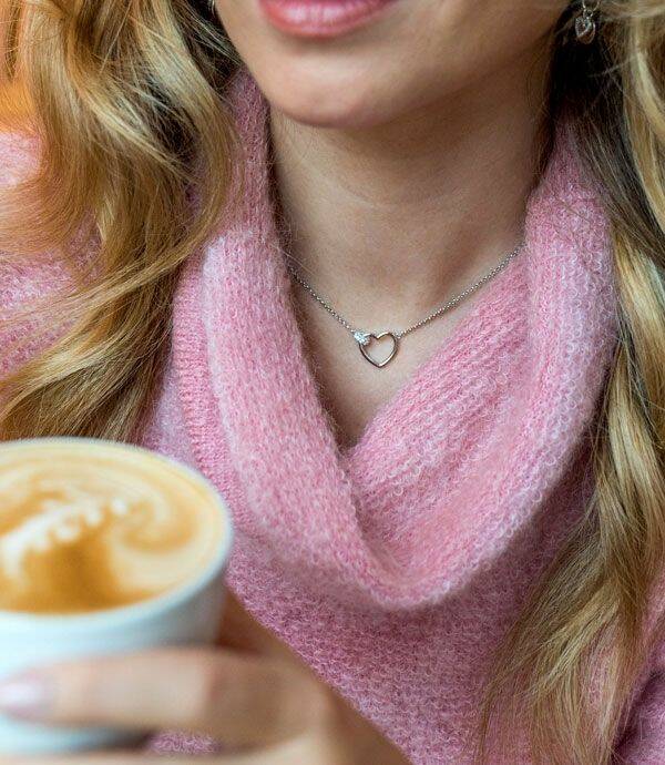 ZINZI zilveren trendy ketting, waarbij in het midden twee vormen mooi met elkaar verbonden zijn: een glad open hartje en een kleinere bol vol bezet met witte zirconia's. De lengte is te variëren tussen 40 en 45cm. Deze ketting kan ook kort op de hals worden gedragen. Met herkenbaar Zinzi hartje bij de sluiting. Vervaardigd van eerste gehalte zilver (925) en met extra rodiumlaag voor een langdurige glans.