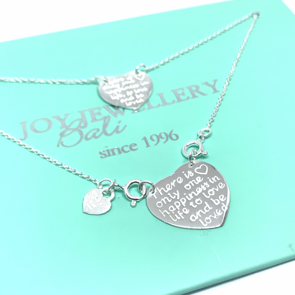 Deze ketting heeft het Joy logo samen met een klein en groot hart. Je kan deze ketting dragen als een lange ketting of korter door het om je nek te wikkelen.