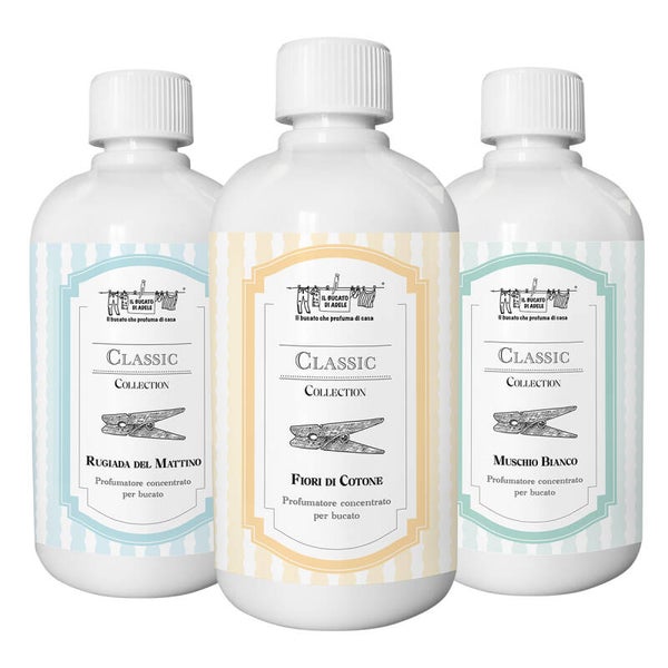 3 tijdloze geuren, met een klassieke twist zoals de was van weleer: Witte Musk, Katoenbloem en Ochtenddauw. Verkrijgbaar in 500ml formaat.