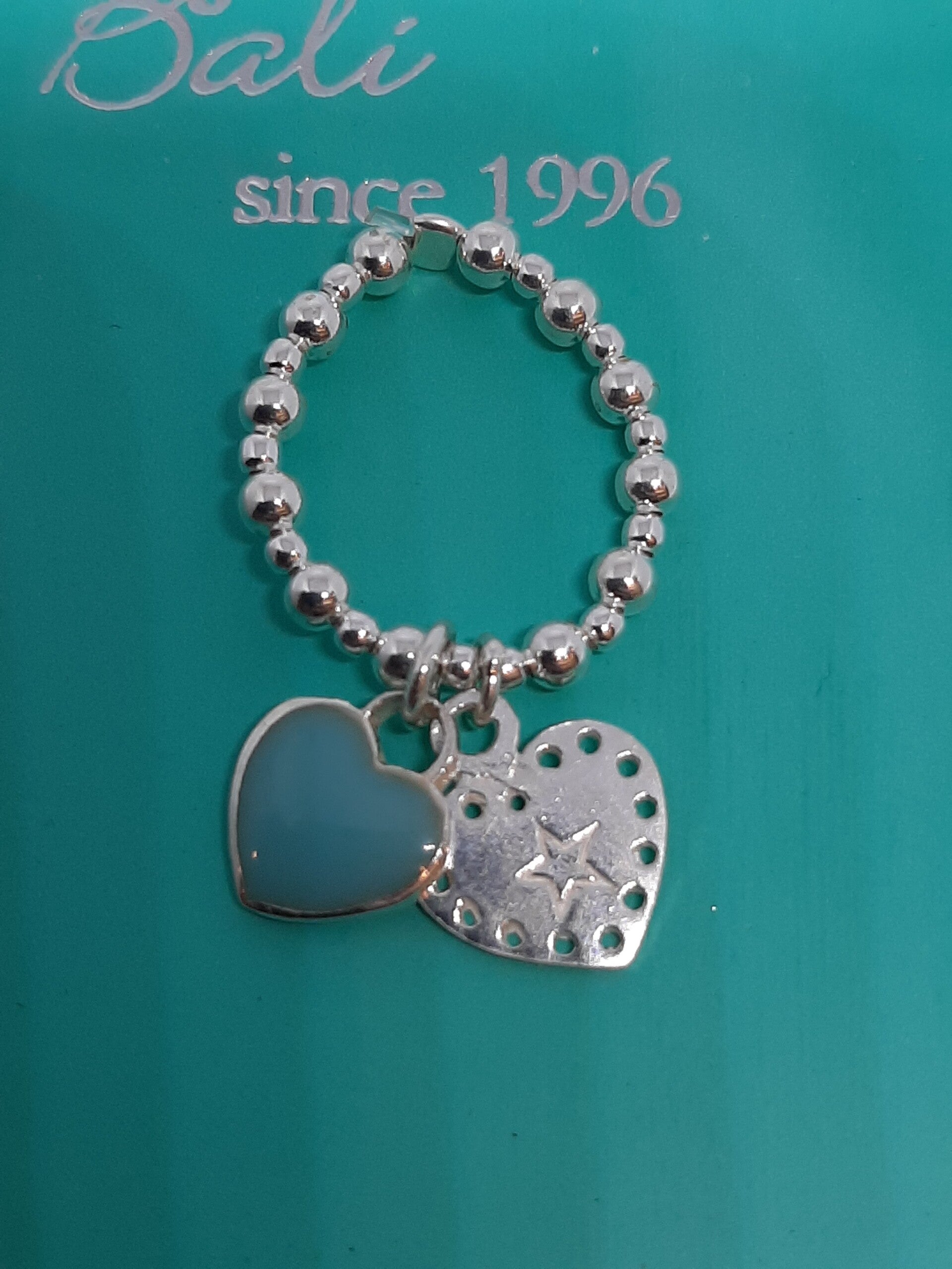 Deze Sandy Bay ringen zijn echt zilveren kralen geregen op elastiek. Hierdoor is het rekbaar en zijn de ringen 1 maat. Aan elke ring zit een van de vele leuke Joy bedels en een gekleurd hartje van hars.