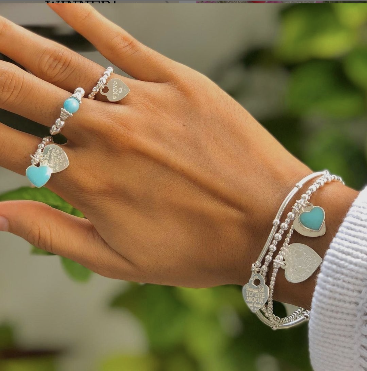 Deze Sandy Bay ringen zijn echt zilveren kralen goud verguld geregen op elastiek. Hierdoor is het rekbaar en zijn de ringen 1 maat. Aan elke ring zit een van de vele leuke Joy bedels en een gekleurd hartje van hars.
