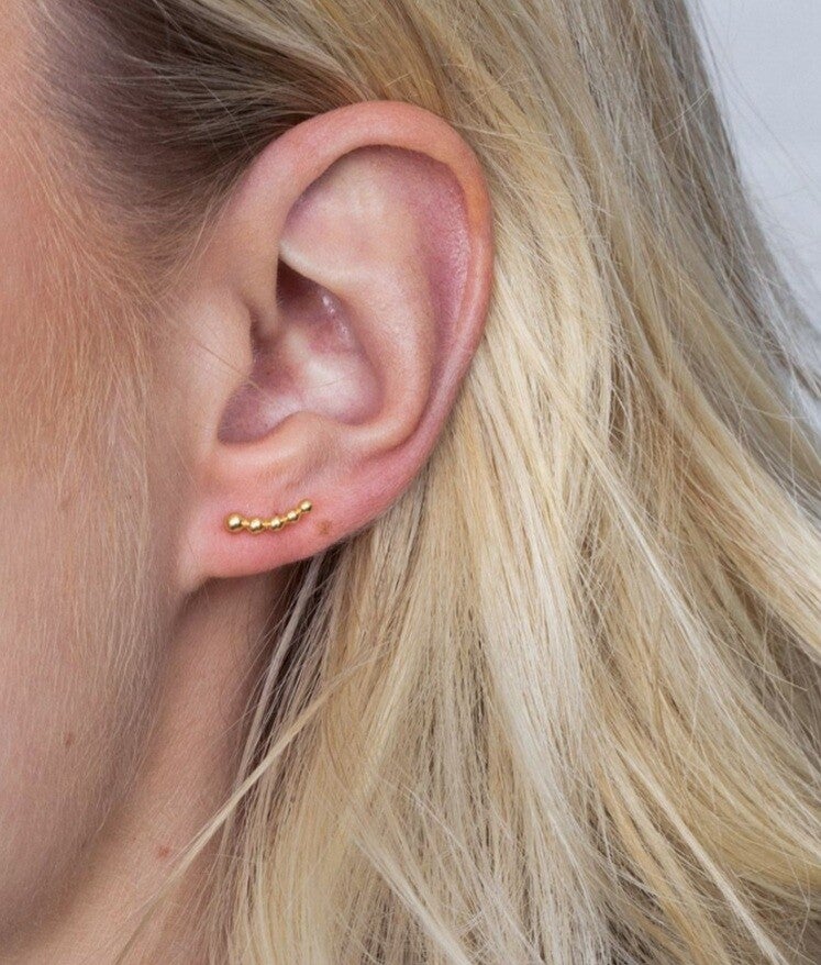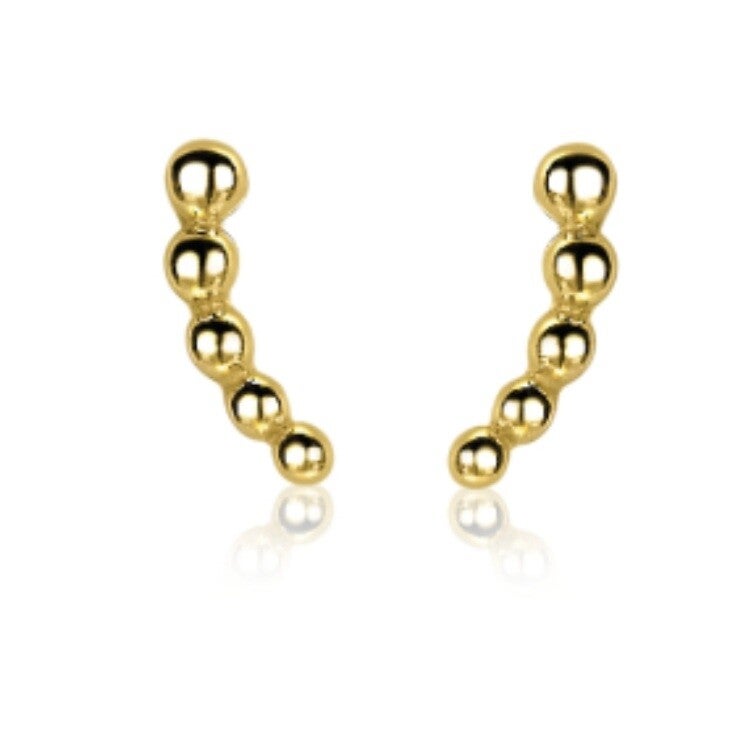ZINZI zilveren gladde oorknoppen met drie kleine bolletjes in golfje . De oorknoppen zijn 10 mm groot. De oorsieraden zijn vervaardigd van eerste gehalte zilver (925) met goldplating en voorzien van een extra rodium voor een langdurige glans.